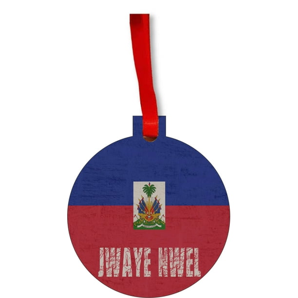 Flag Haiti Haitian Grunge Flag Jwaye Nwel Round Shaped Flat Hardboard Christmas Ornament Tree Decoration Unique Modern Novelty Tree Decor Favors Walmart Com Walmart Com