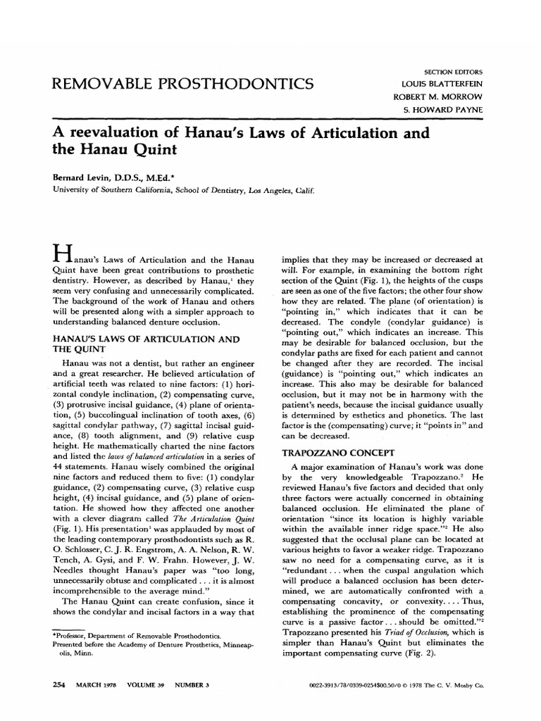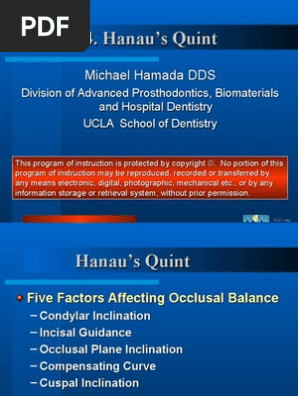 Hanau Quint Described As A Formula To Quantify Balanced Occlusion Request Pdf